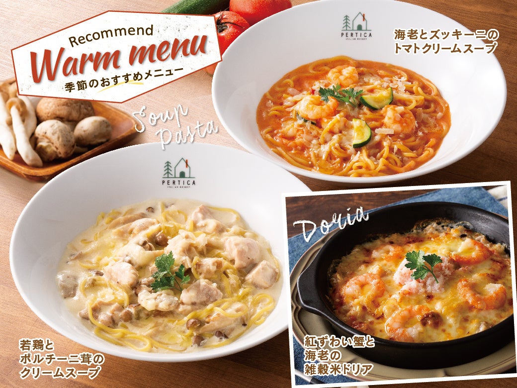 【心も体も温まる冬のひと皿が登場】“イタリアンリゾートペルティカ”が贈る冬の新作メニューが12/5(木)スタート!濃厚なクリームスープパスタや心躍るドリアで季節を堪能!