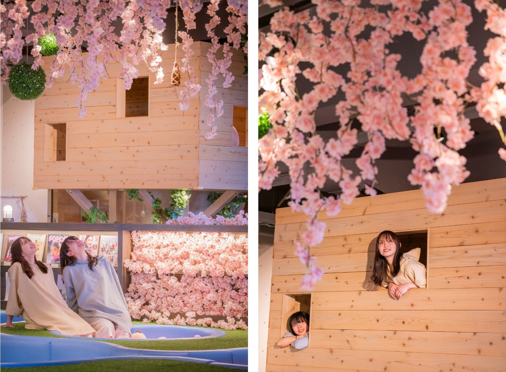 1Fのラウンジにお花見エリアが登場! ポンドソファで桜に埋もれてみてはいかがでしょう。