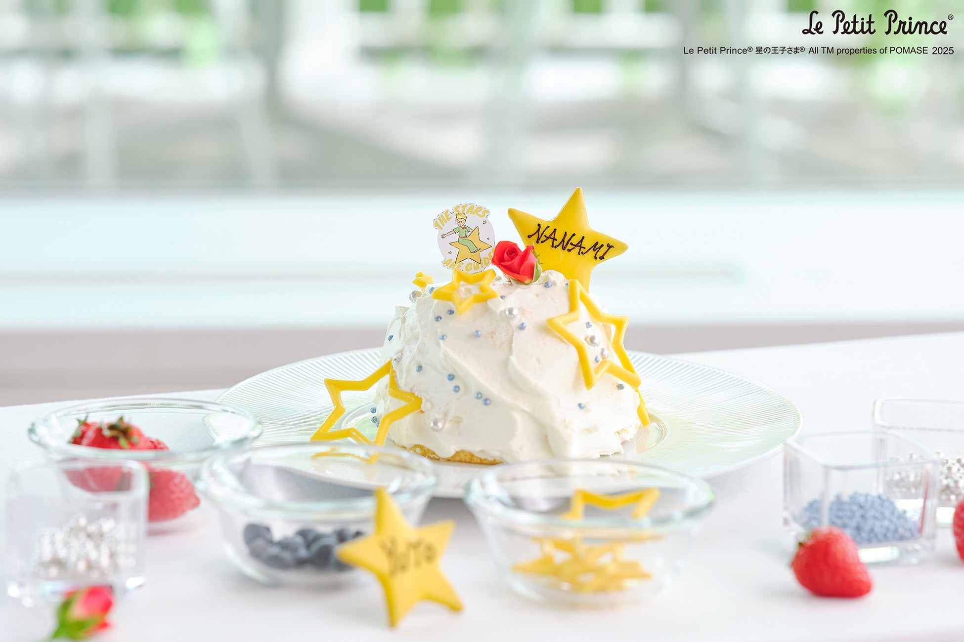 リトルパティシエ体験では、エグゼクティブシェフパティシエ 永井翔也レクチャーのもと、世界にひとつだけの惑星ドームケーキを作っていただきます。スポンジ生地にクリームを塗り、お好みのフルーツを2段に分けてのせ、仕上げは一輪のバラと名前入りのアイシングクッキーで飾り付けていただき、体験後はお子さまが作ったドームケーキをお召し上がりいただきます。