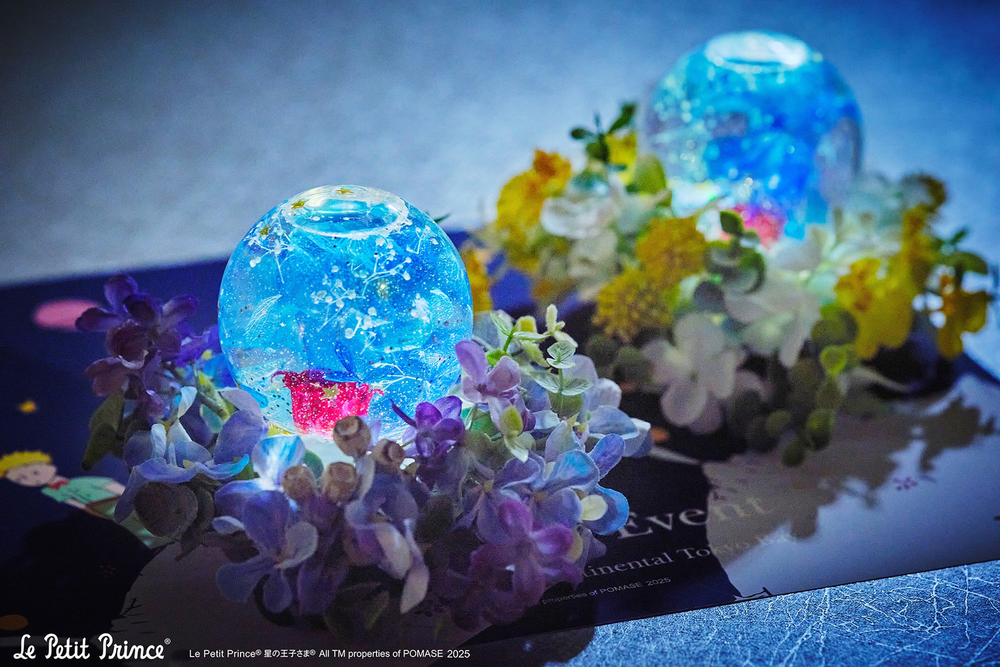フラワーアレンジメント体験&親子ランチでは、一輪のバラを中心にお好みのお花で光るオリジナルハーバリウムドーム“Blooming Star”を作っていただき、完成後は海を望むレストラン マンハッタンにて『星の王子さま』をモチーフとしたランチコースをお楽しみいただけます。