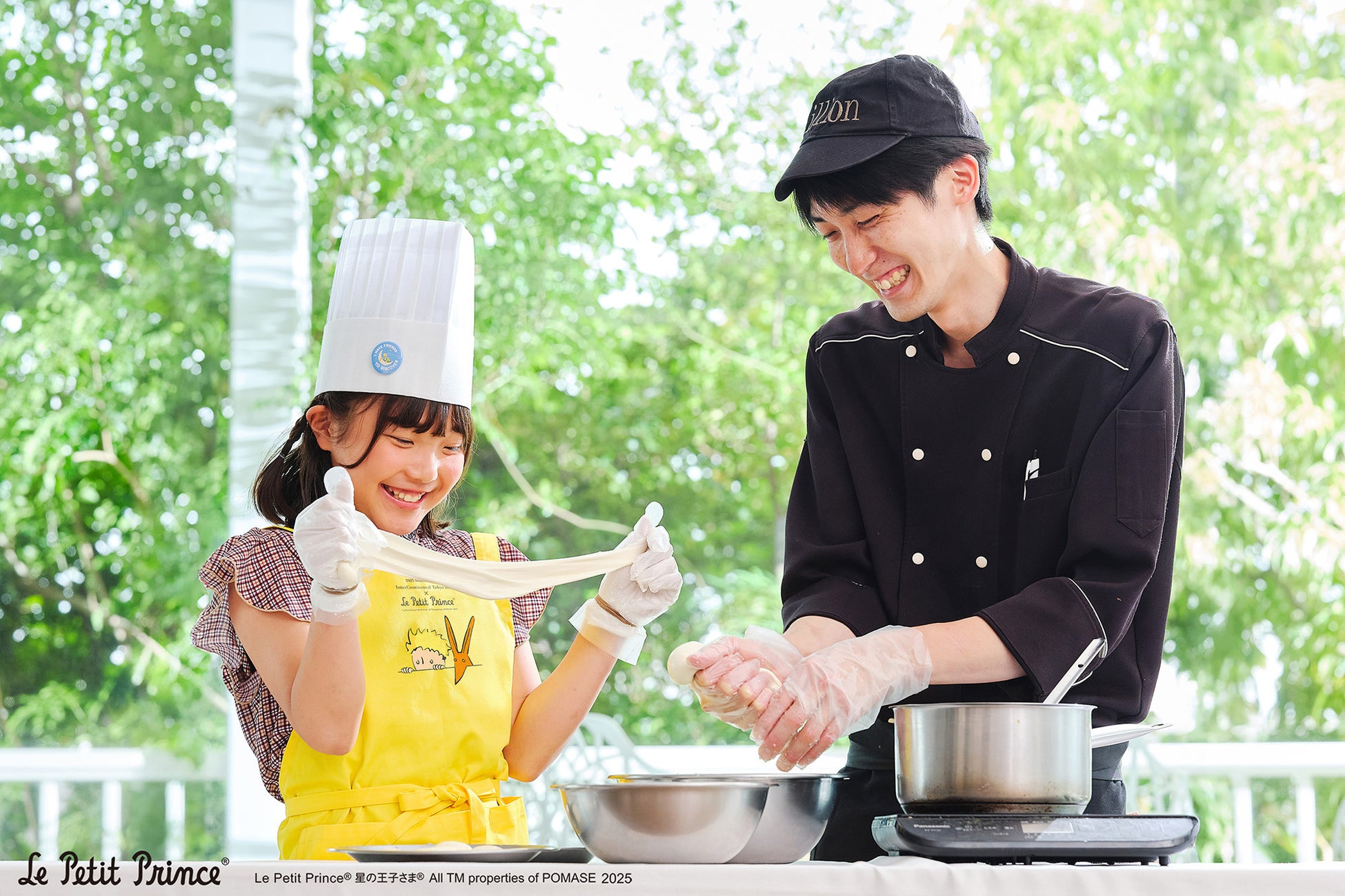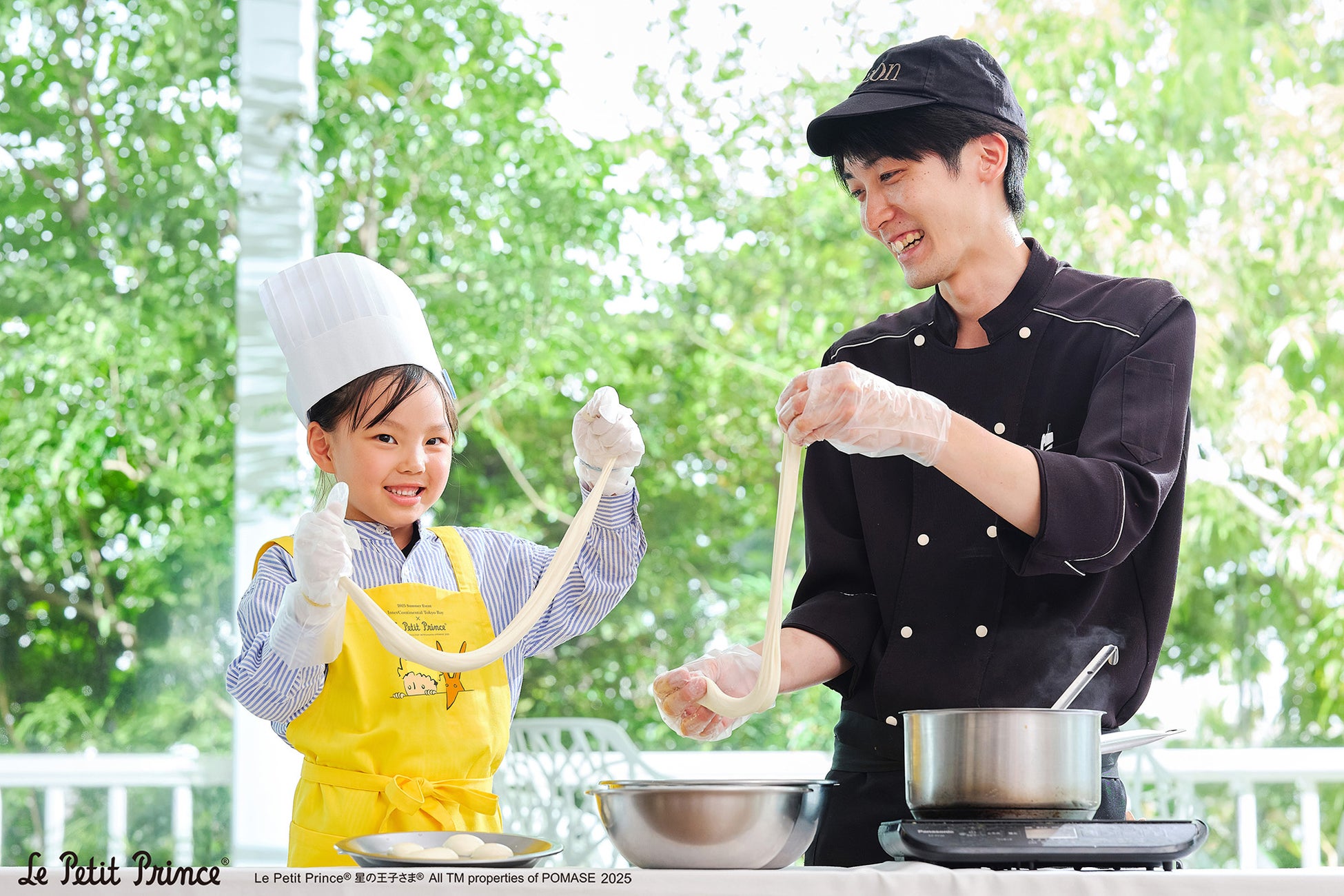親子クッキング教室では、イタリアンダイニング ジリオンのシェフ 阿部洋平が、モッツァレラチーズの仕上げとカタラーナの作り方を実演しながらレクチャーいたします。物語で語られている「大切なものは目に見えない」という言葉の通り、料理に込める思いや時間の大切さを感じていただき、終了後はお子さまが実際に体験したイタリアン料理をコース仕立てでお召し上がりいただきます。