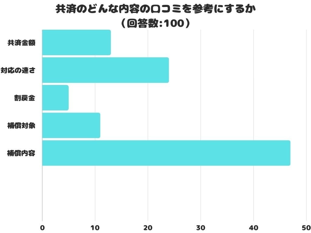 共済のどんな内容の口コミを参考にするかをアンケートにて調査したところ、1位は「補償内容」でした。