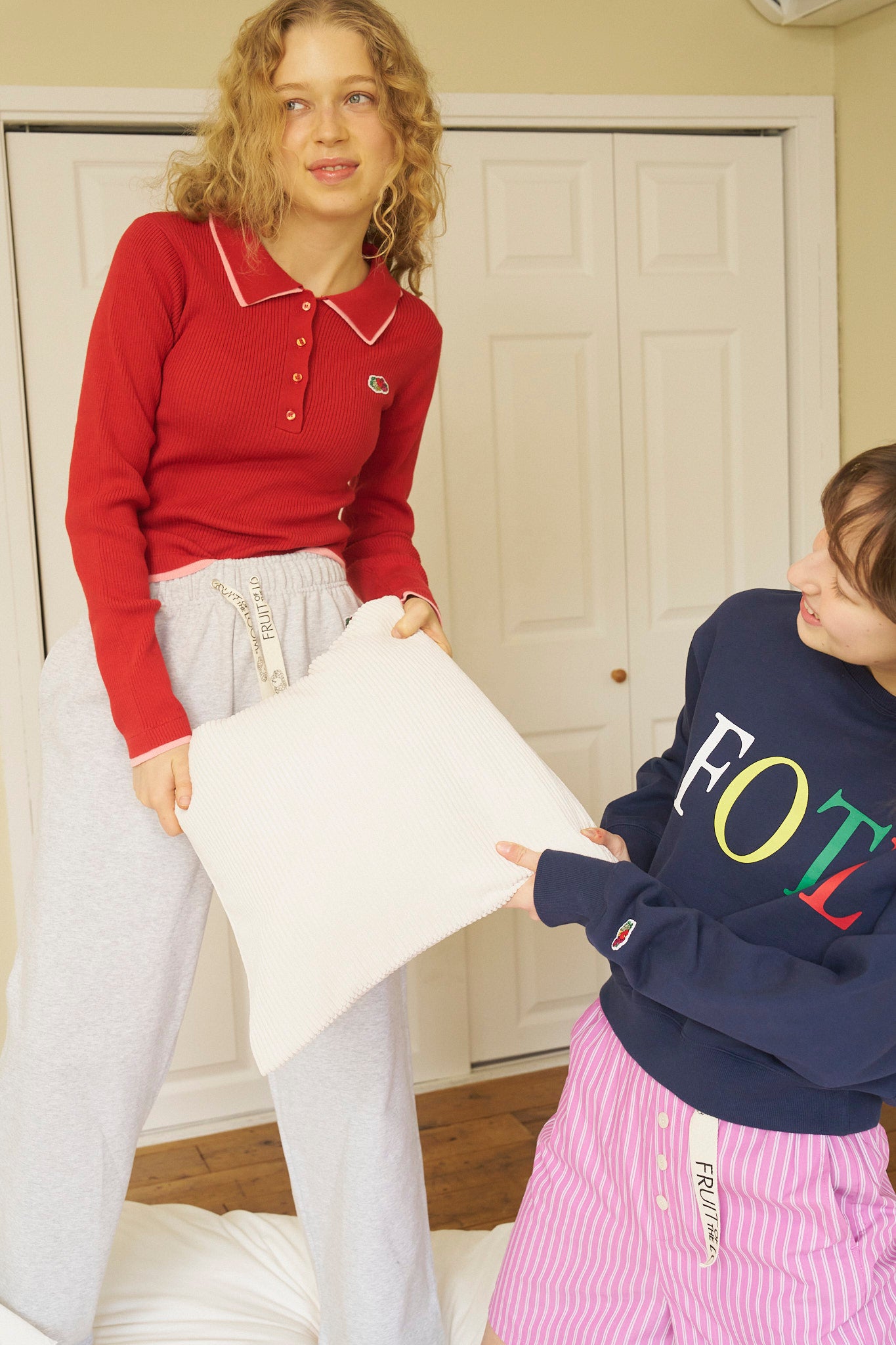 コラボレーション第1弾では、定番のルームウェアに加え、FRUIT OF THE LOOMならではのキャッチーなカラーバリエーションとデザインが落とし込まれたシャツシリーズが新たに登場。
