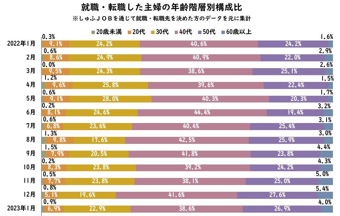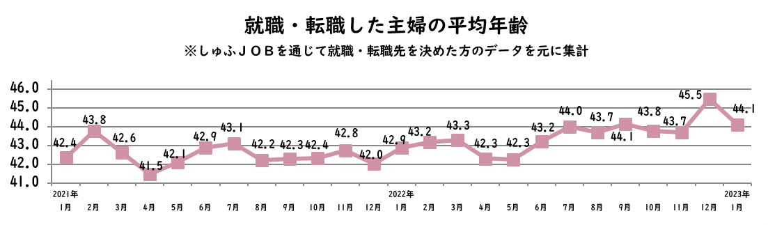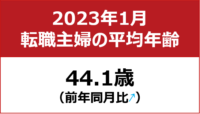 【転職主婦の平均年齢調査 2023年1月】44.1歳(前年同月比+1.2歳)