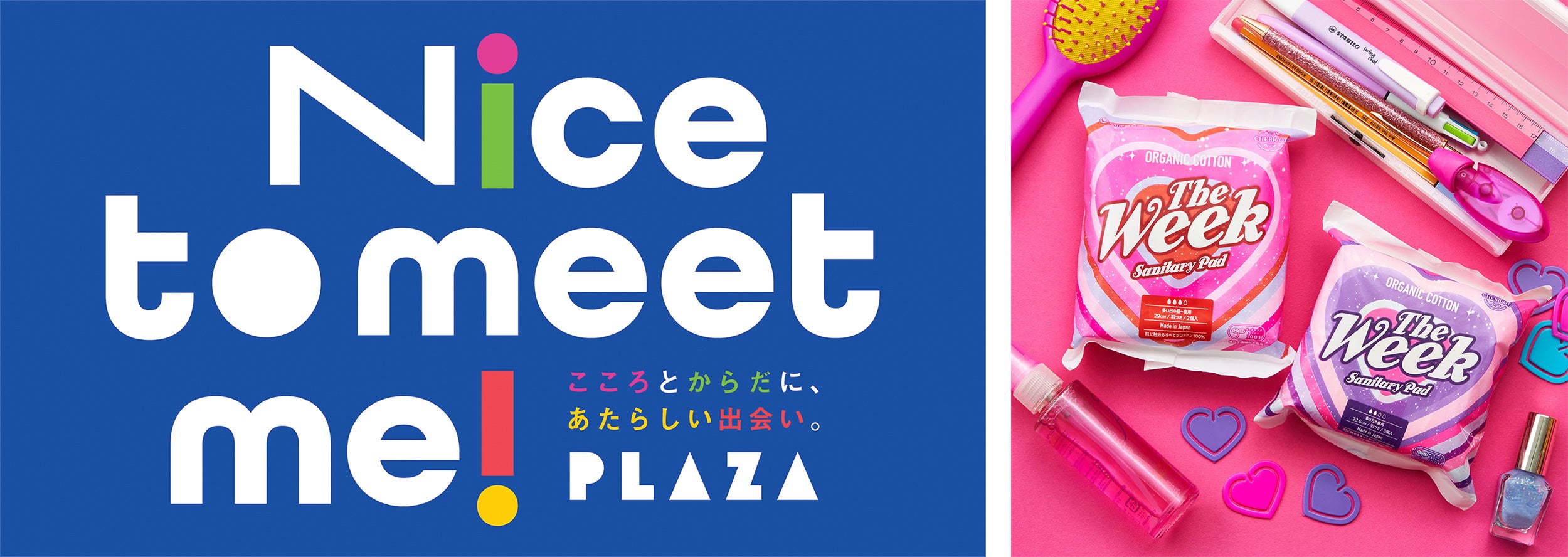 2022年3月1日、Z世代のこころとからだに、あたらしい出会いを届けるプロジェクト「Nice tomeet me!」の企画第一弾として、PLAZA初のオリジナルパッケージのオーガニック生理用ナプキン「The Week Sanitary Pad」を発売。