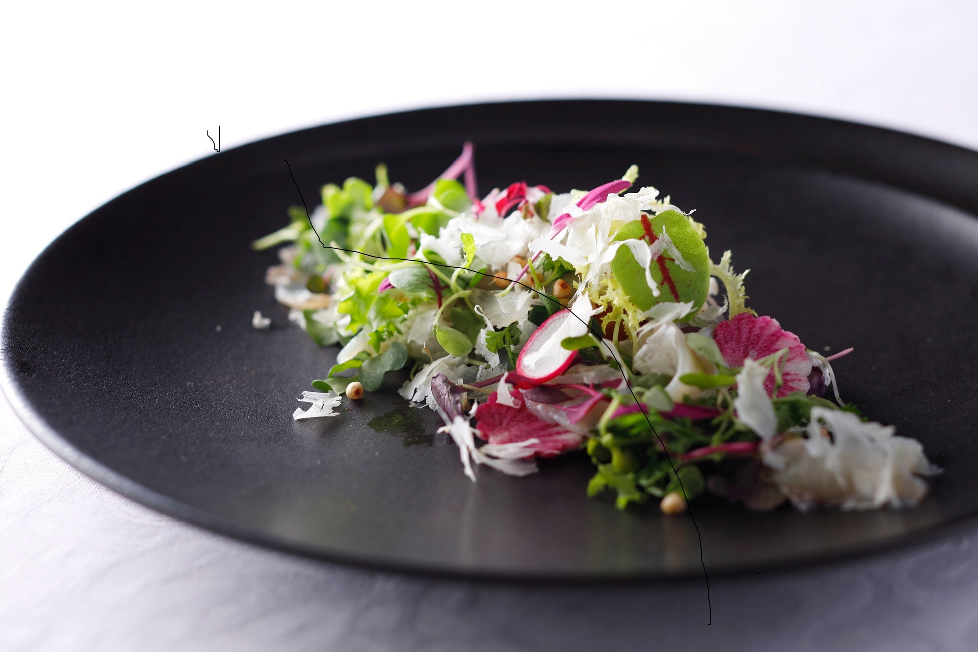 スパイシーなピジョンのサラダ仕立てともも肉のコンフィ トリュフのビネグレット