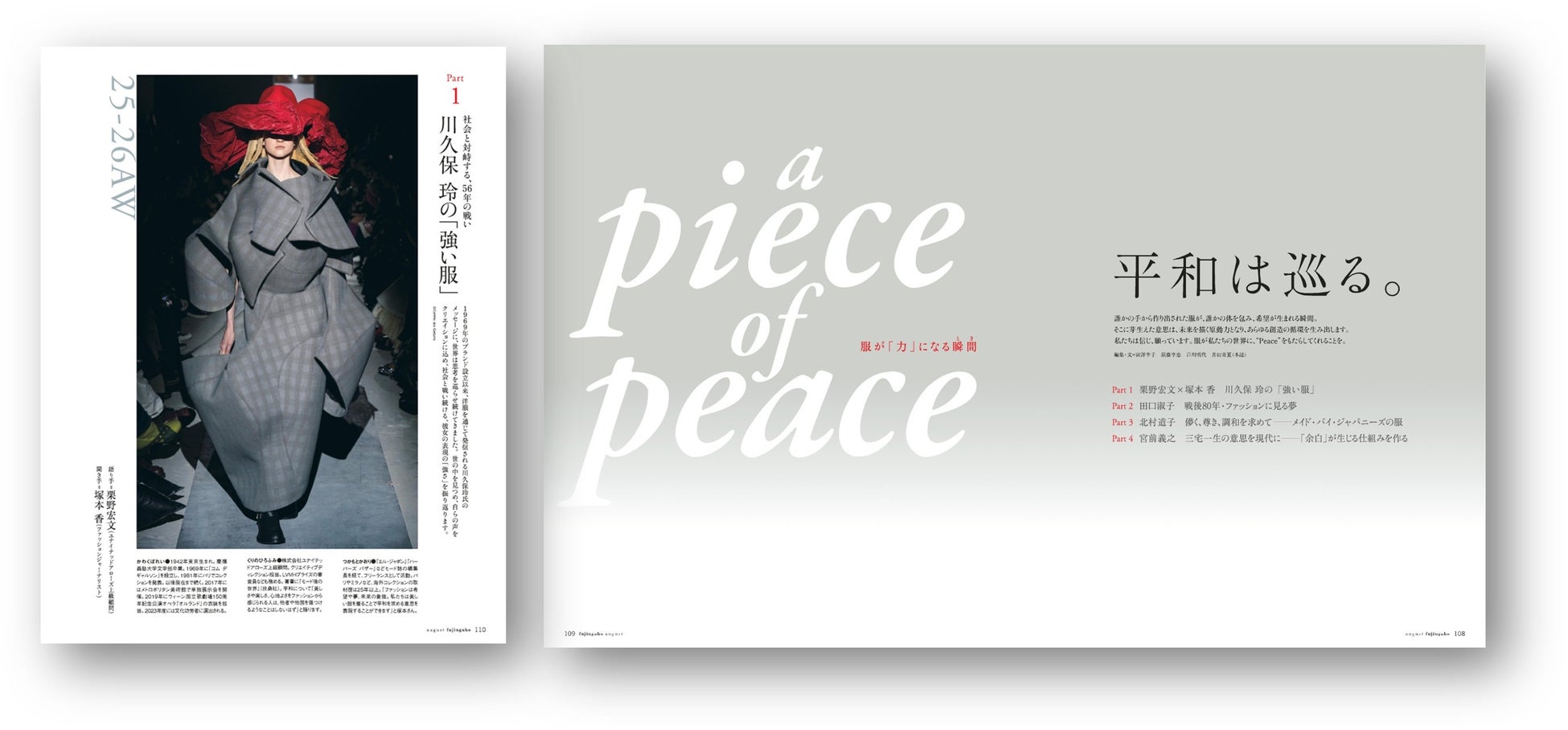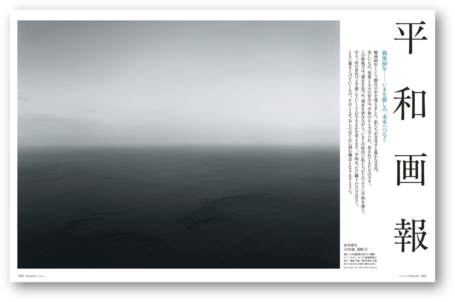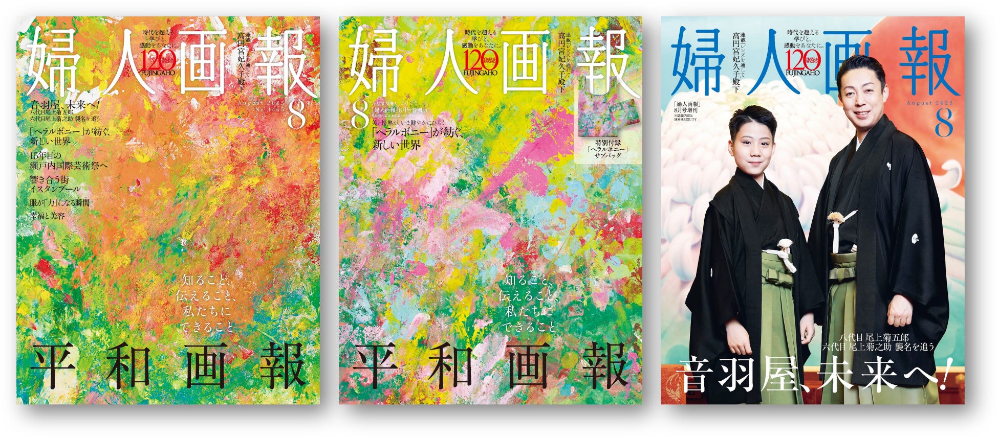 8月号(7月1日発売)では、「平和画報」と題し、戦後80年という歴史の転機を見つめ、「平和とは何か」をあらためて考える特集をお届けします。また、この通常版に加えて、ヘラルボニーのサブバッグ付録付き特別版、八代目尾上菊五郎さんと六代目尾上菊之助さん親子が表紙を飾る増刊特別版、合計3つのエディションを、7月1日(火)に同時発売します。