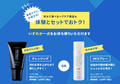 さらに、体験いただいたお客様には「ヘアリプロ 薬用スカルプクレンジングEX」または「ビューステージ UVプロテクト プレミアム」いずれかをプレゼントします。