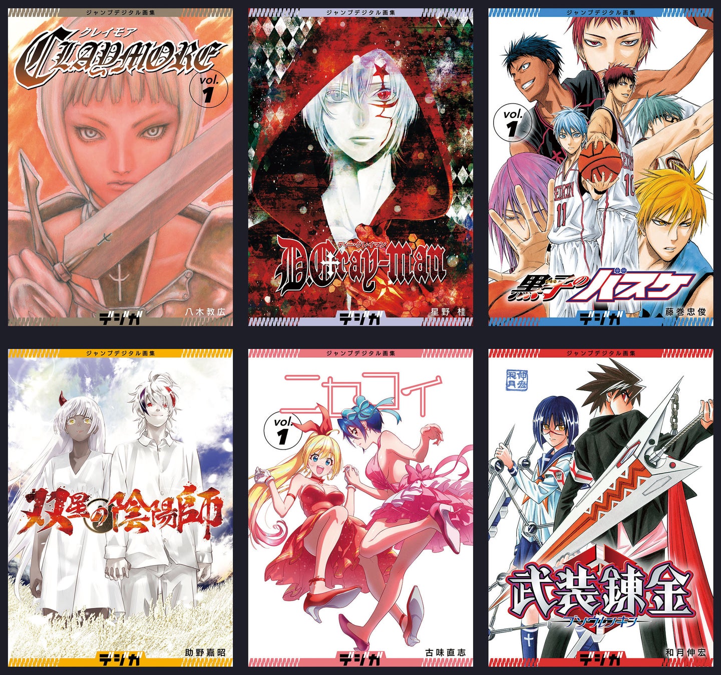 第1弾は『CLAYMORE』(八木教広・著)・『D.Gray-man』(星野桂・著)『黒子のバスケ』(藤巻忠俊・著)・『双星の陰陽師』(助野嘉昭・著)・『ニセコイ』(古味直志・著)・『武装錬金』(和月伸宏・著)の6タイトル計10巻で、11月10日(月)より各電子書店にて配信を開始します。