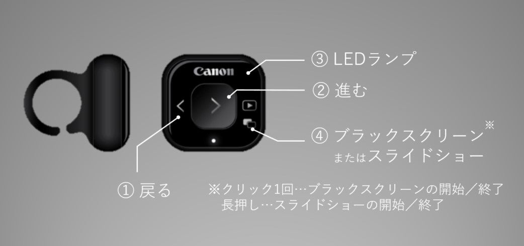 ・ワンクリックでブラックスクリーン表示やスライドショーの開始・終了が可能