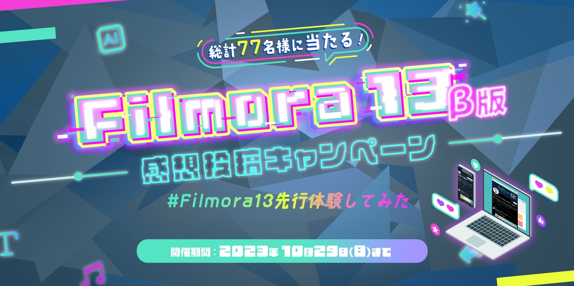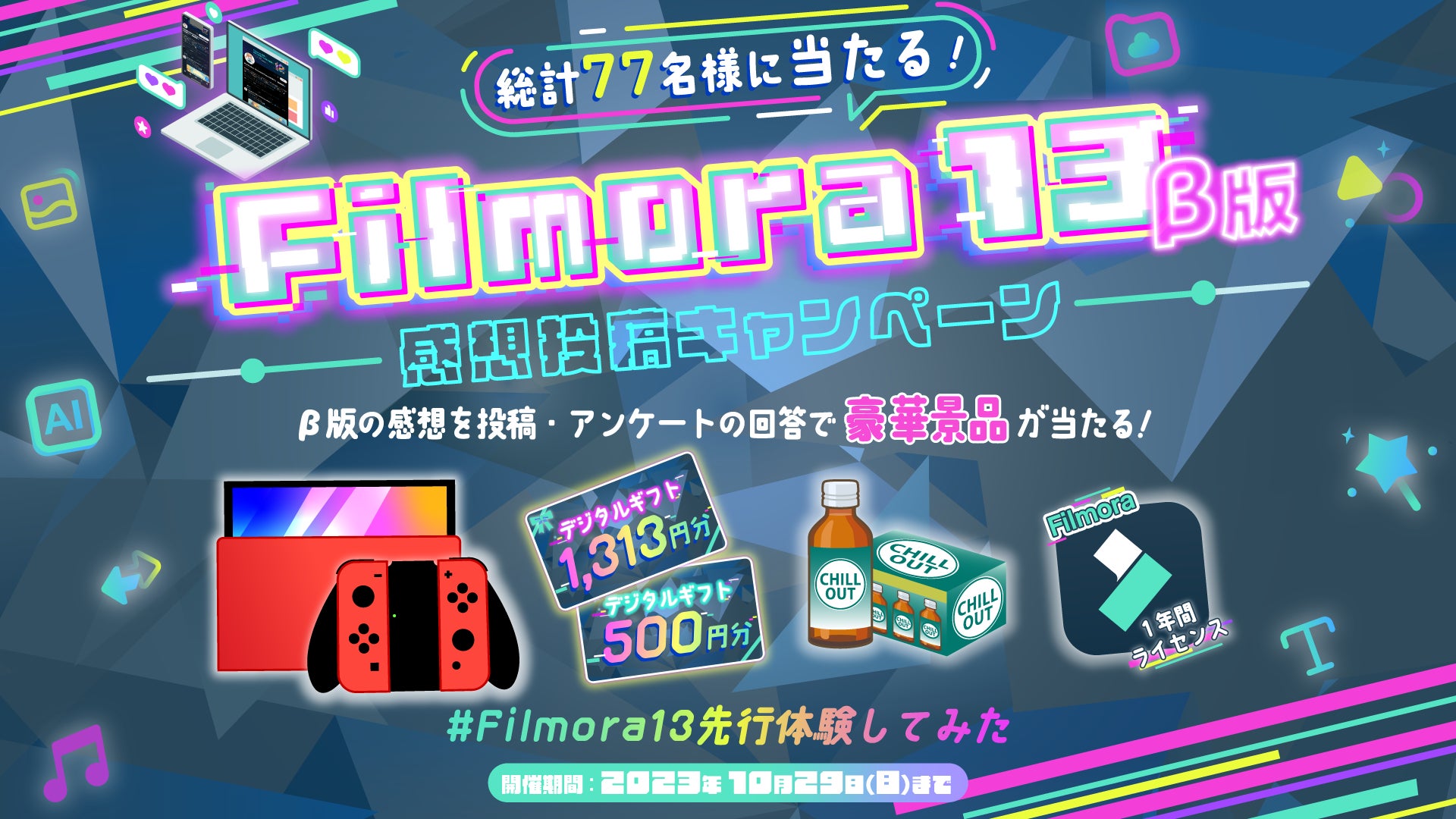 【総額18万円相当】豪華景品が当たる『Wondershare Filmora 新バージョン13 β版』先行体験キャンペーン実施中!