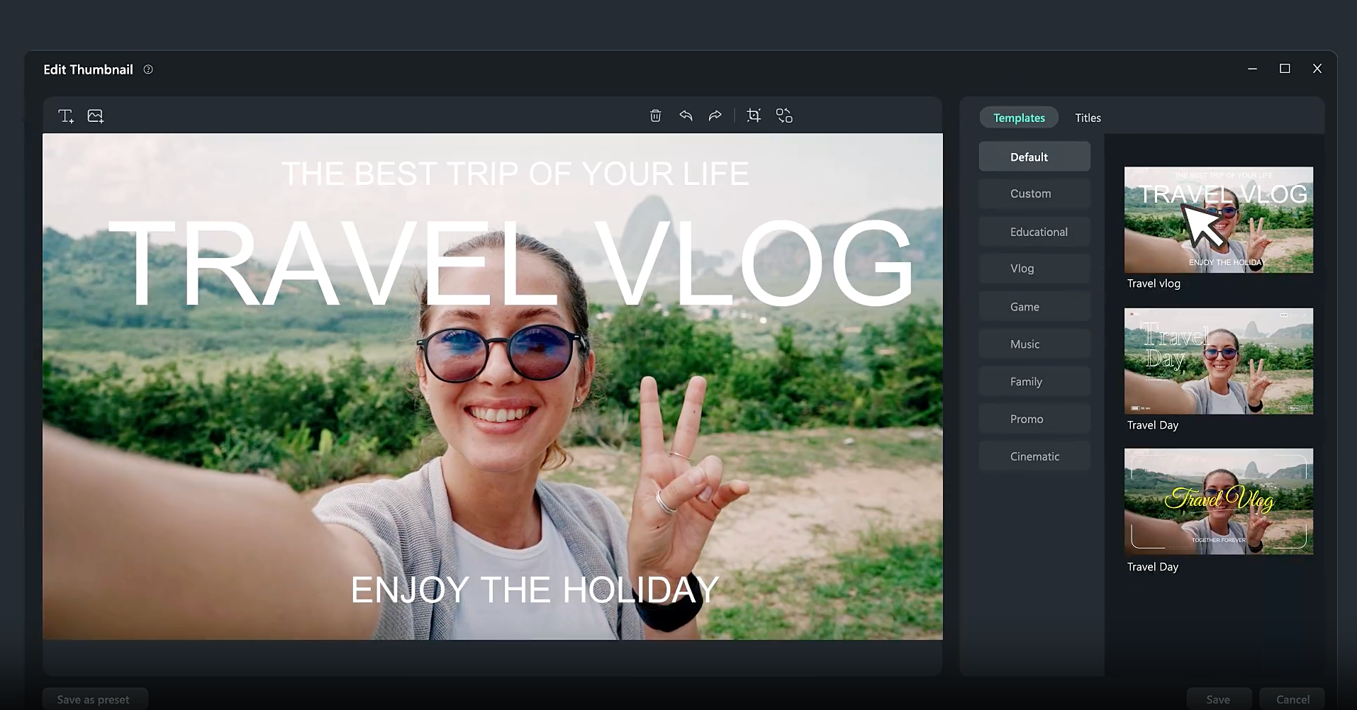 サムネに最適なシーンをAIが自動で検出し、テンプレートを使って自由にカスタマイズできます。