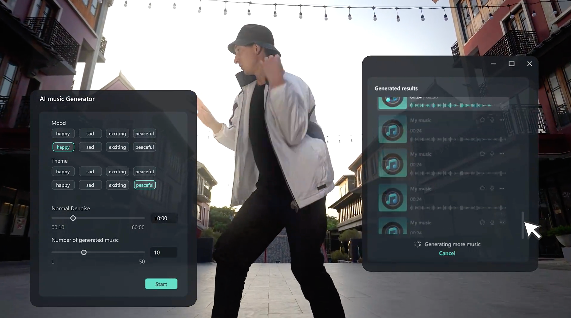 ムードや長さを選択するだけでオリジナルの音楽を