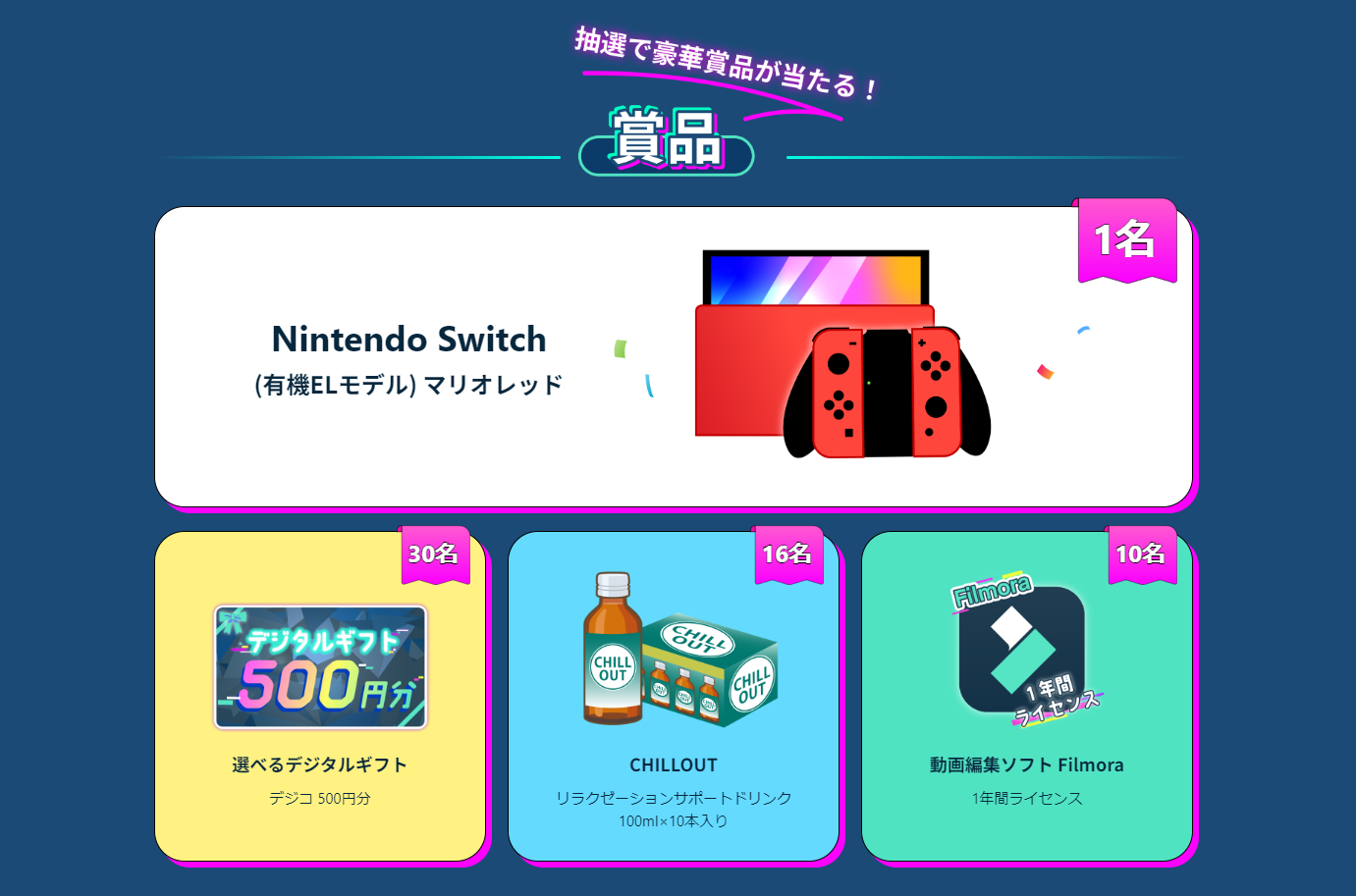 【豪華賞品】Nintendo Switch (有機ELモデル) など抽選で当たる!