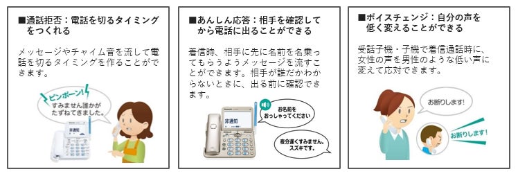 そして、電話に出る前に注意喚起をしてくれ、自動録音された内容を電話機を通して、第三者に聞かせることができる。これは、冷静に判断をさせない犯罪者の手口から守られると強く感じています。