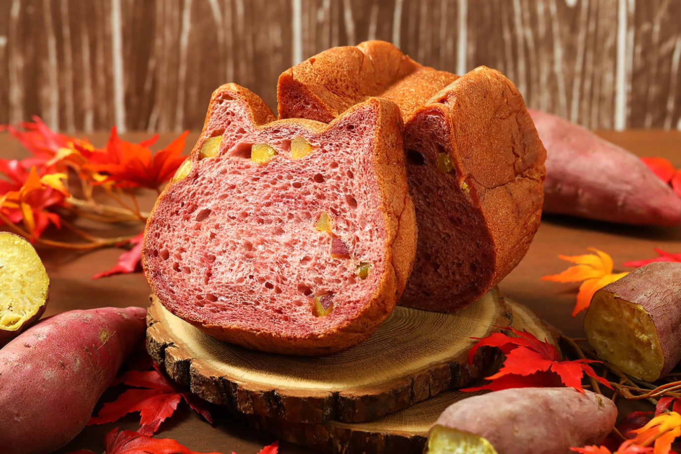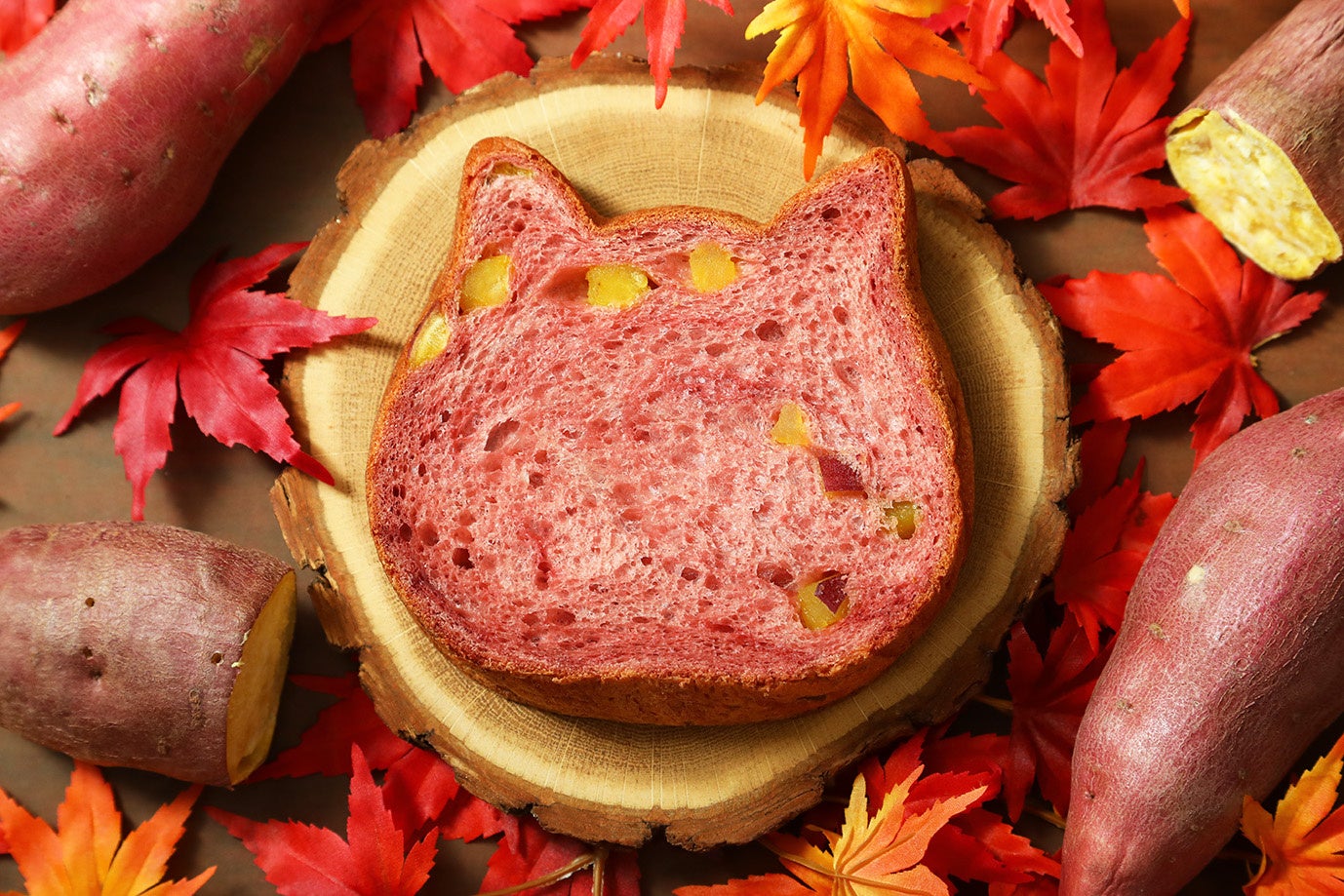 さらに、公式オンラインストア限定『ねこねこ食パン(紫いも+三毛猫)』では、紫いも風味の生地にさつまいもを練り込んで焼き上げた、”芋づくし”のねこねこ食パンを展開いたします。ミルクのうまみがじんわり広がるミルク100%のねこねこ食パンに、秋の深まりを感じる素材を組み合わせた10月限定のねこねこ食パン。