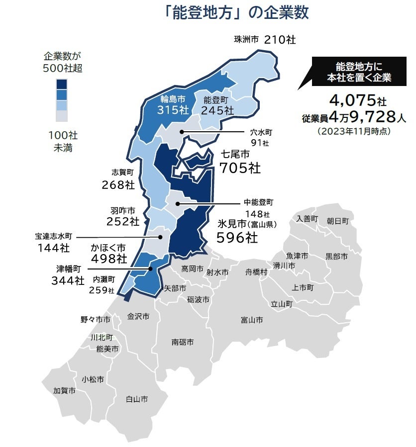 能登地方に本社、計4075社、従業員数は4.9万人 企業数最多は「七尾市」705社