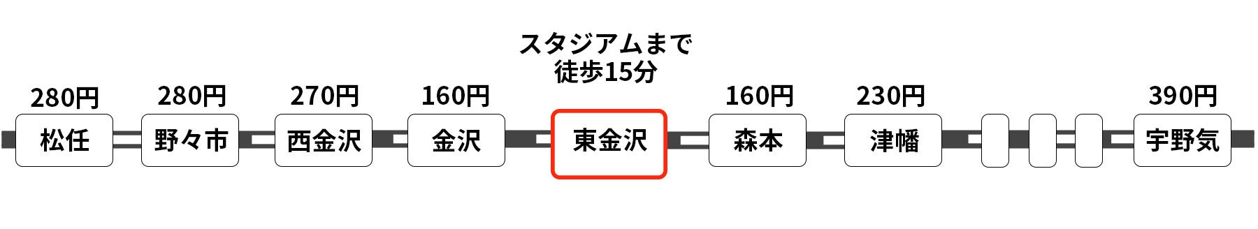 金沢駅からスタジアムへ、無料シャトルバスを運行いたします。