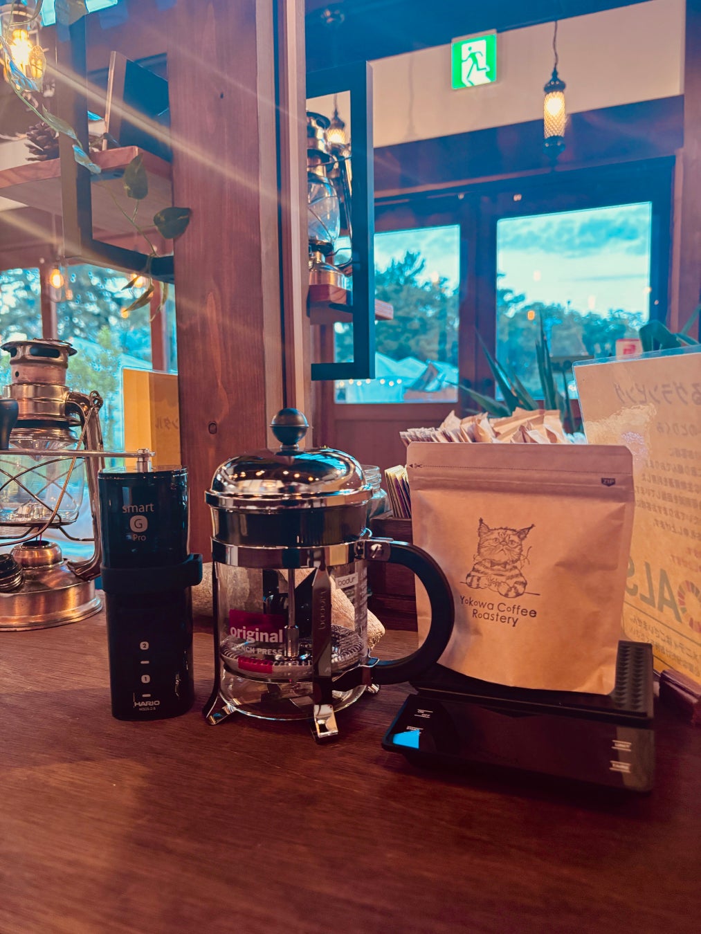 宿泊者は、専用のハンドミルで豆を挽き、香り高いフレンチプレスコーヒーを淹れる体験が可能。