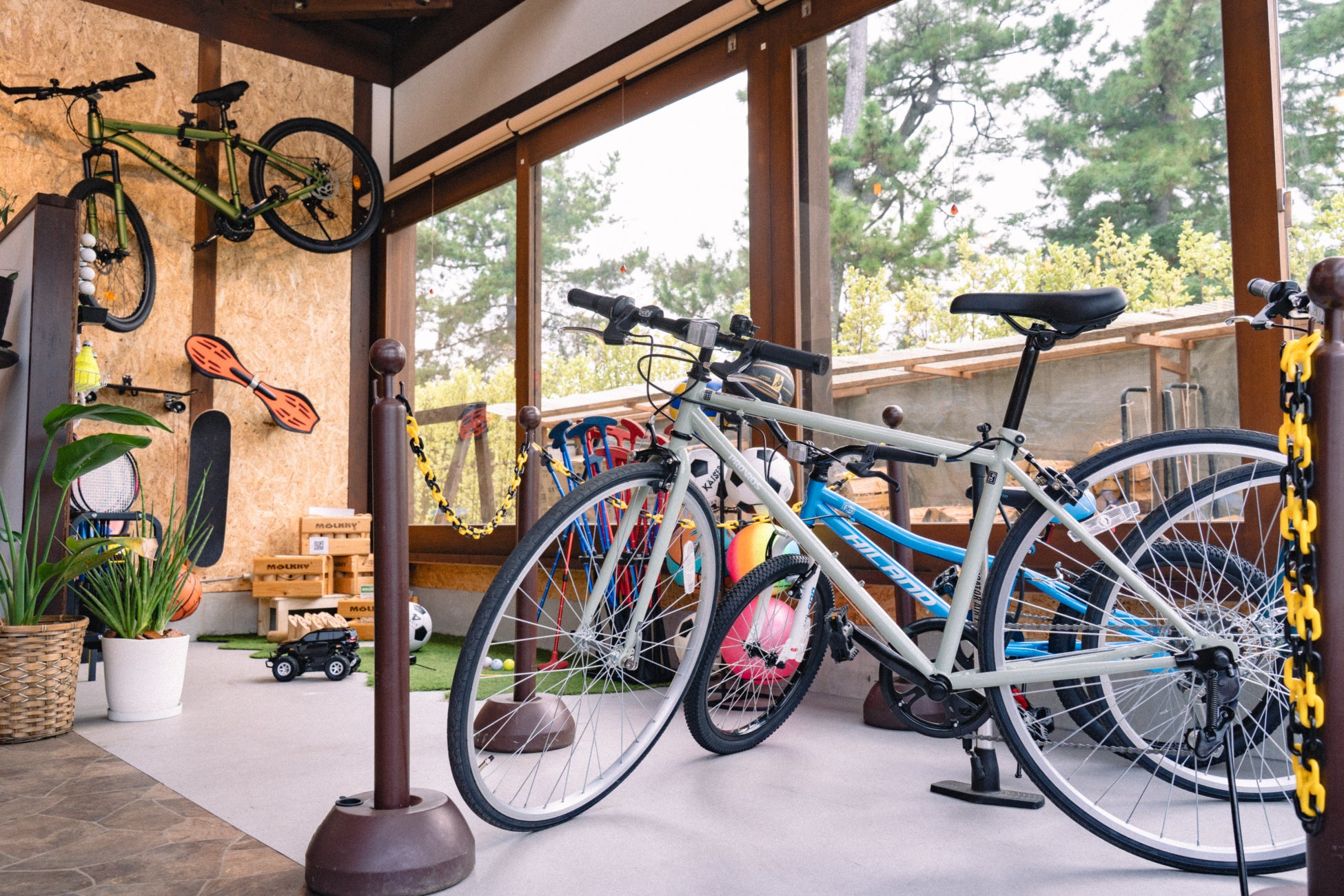お子様用の自転車とヘルメットもあるので、家族連れにもおすすめです。