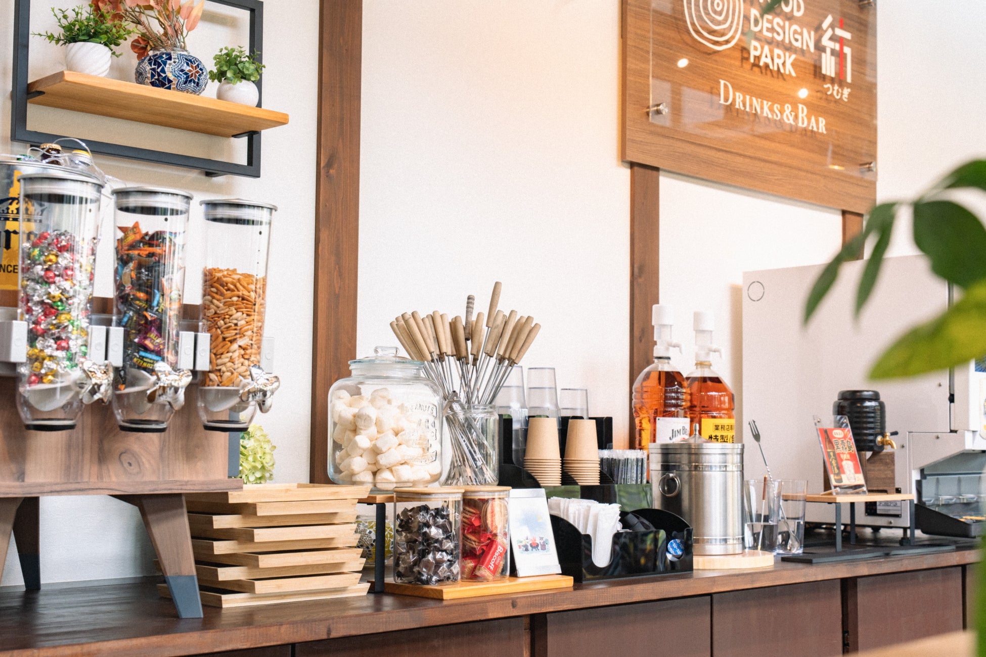 アルコールバーやドリンクバーを備え、焚火を囲みながらホットドリンクで体を温める時間も楽しめます。
