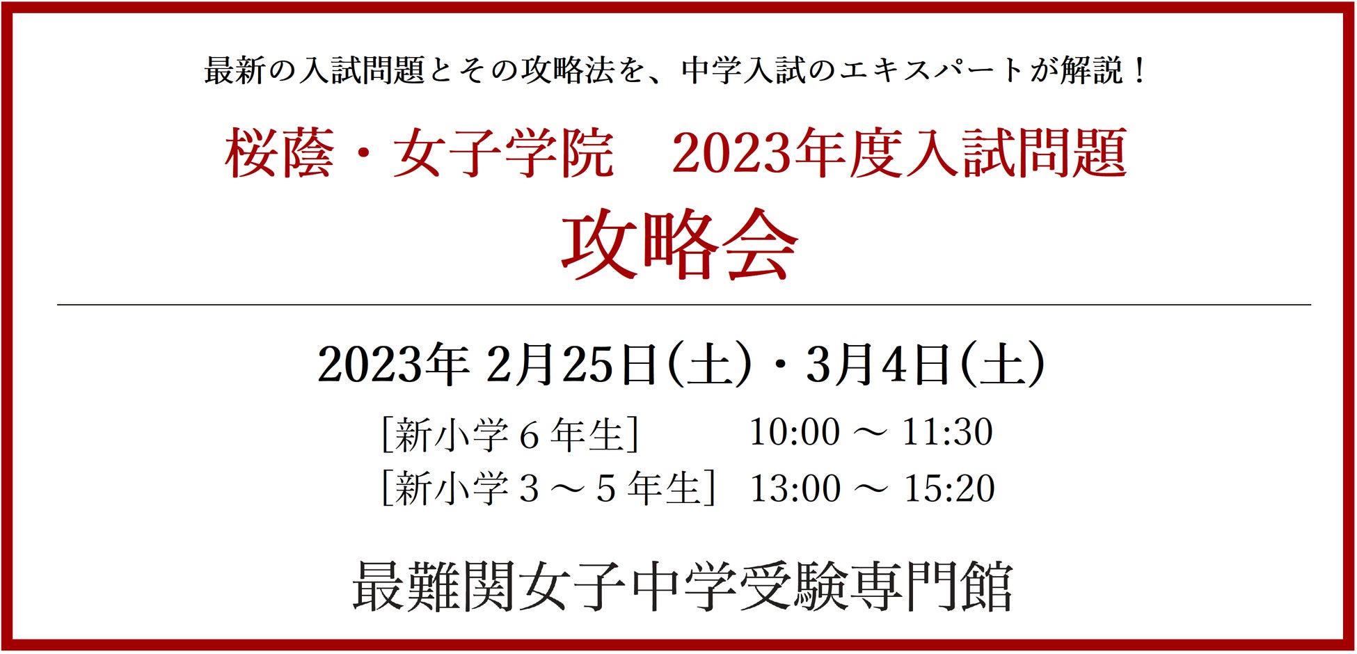 10:00~11:00 「桜蔭・女子学院2023年度入試問題 攻略会」