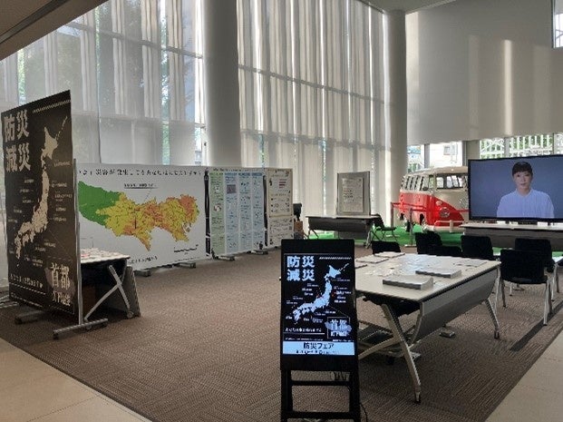 在宅避難のすすめ、住宅の耐震化、家具転倒防止対策、給水袋体験、食と健康、火災予防、携帯トイレに関する展示を予定しています。