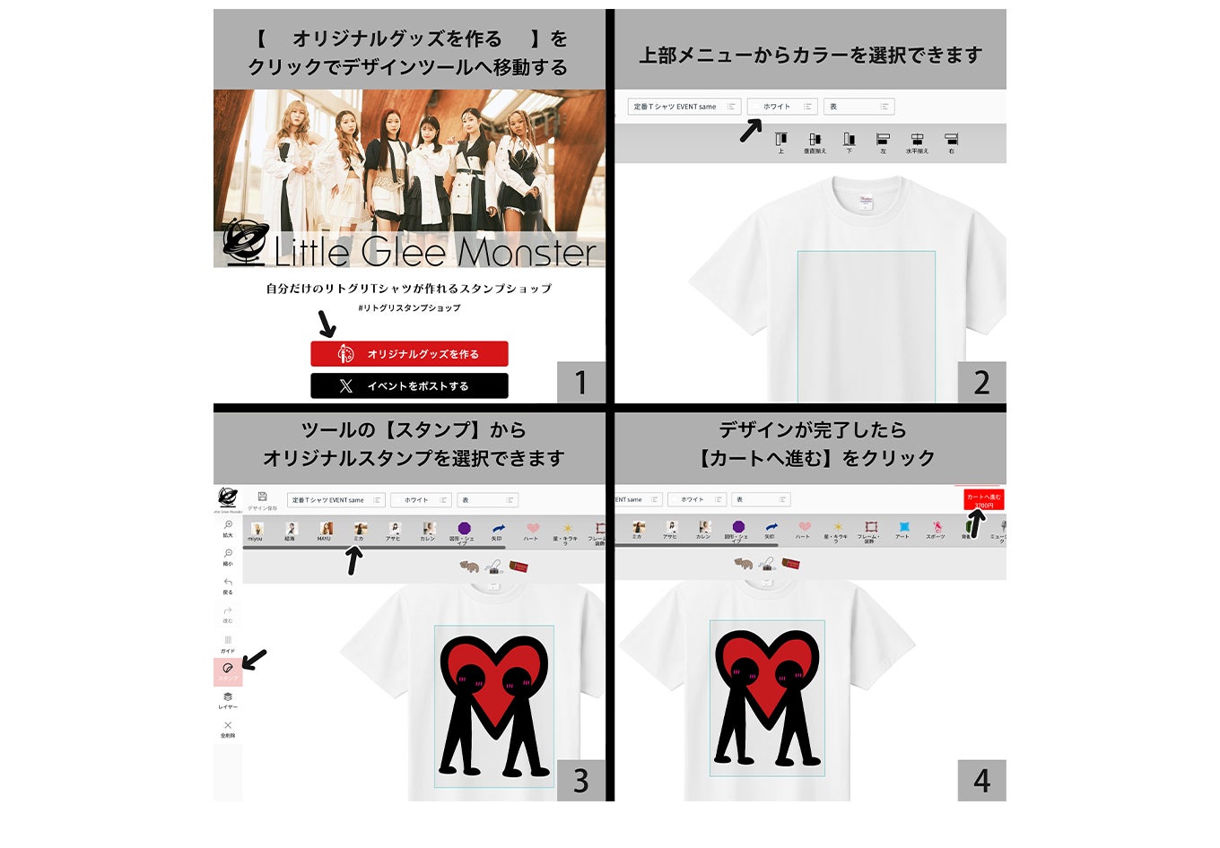 ファンの皆さまは、お好きなスタンプを自由に選んで配置することで、世界に一つだけの“リトグリTシャツ”を作ることが可能です。