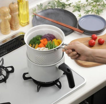 焼く、炒める、煮る、揚げる、沸かす、蒸す、がすべてこれ1台で調理できる、蒸し器付きのマルチポット。