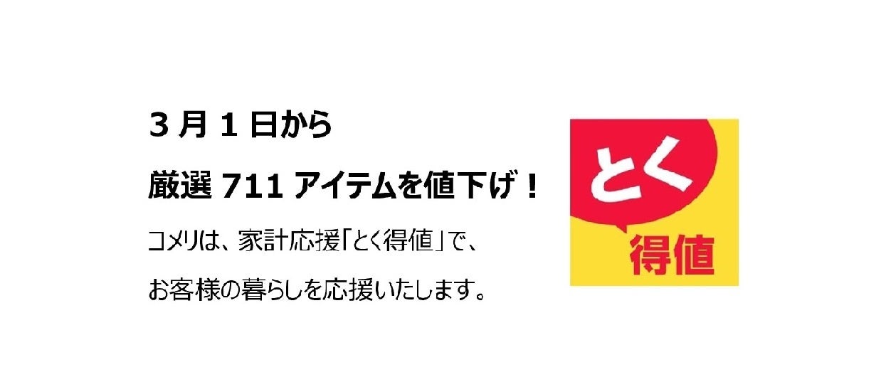 家計応援「とく得値」!3月1日より新たに711アイテムを値下げ!