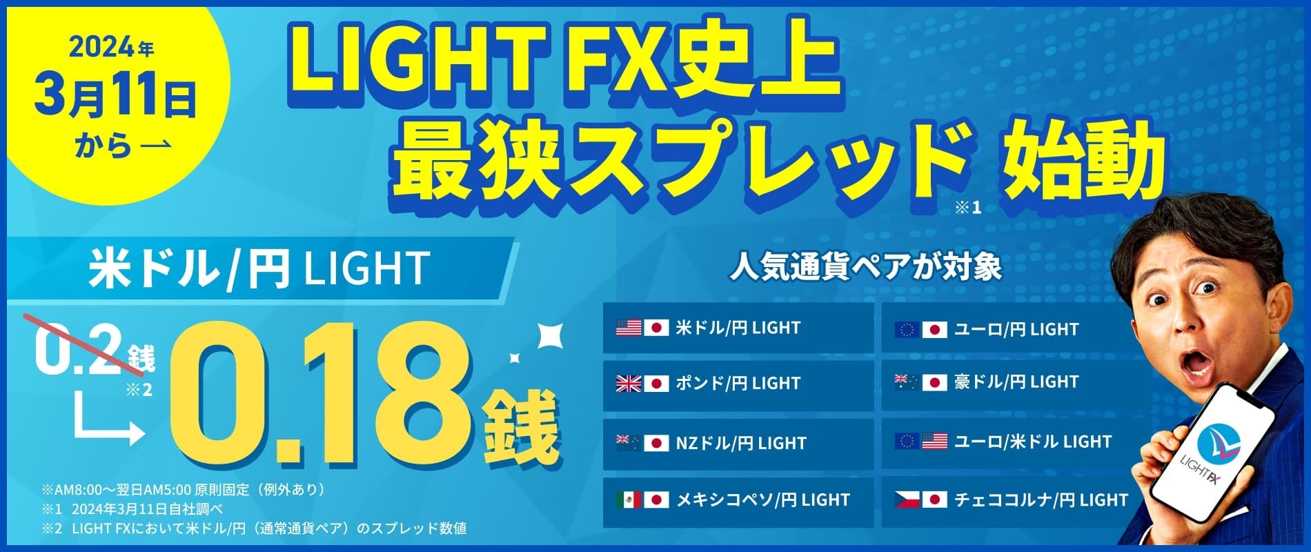 【LIGHT FX史上最狭のスプレッド】ついに0.18銭の米ドル/円 LIGHT!