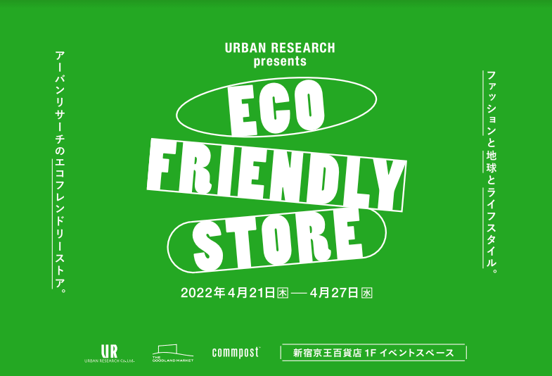 株式会社アーバンリサーチ(本社:大阪府大阪市西区、代表取締役社長 竹村幸造)は4/21(木)〜4/27(水)の期間中、新宿京王百貨店 1Fイベントスペースにて、サステナブルコンテンツ型ポップアップストア「ECO FRIENDLY STORE」を開催いたします。