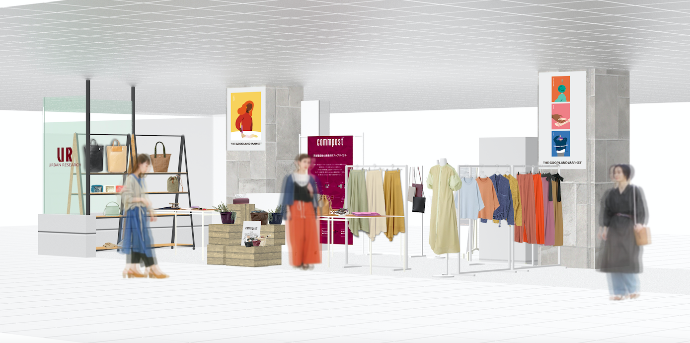出展するのは同社が取り組む異業種協働の廃棄衣料アップサイクルブランド「commpost(コンポスト)」と、人や環境に配慮した循環型ファッションライフスタイルを提案するプラットフォームブランド「THE GOODLAND MARKET(ザ グッドランド マーケット)」です。