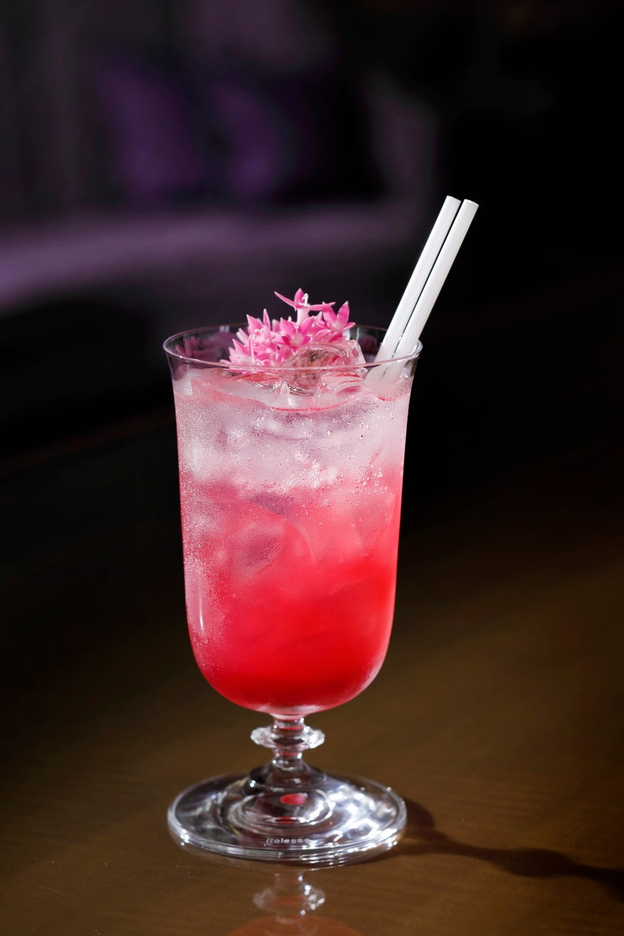 『花椿ビスケット24枚入限定缶 ピンクポップ』のカラーに合わせて、心躍るピンクでポップなフィズに仕上げました。