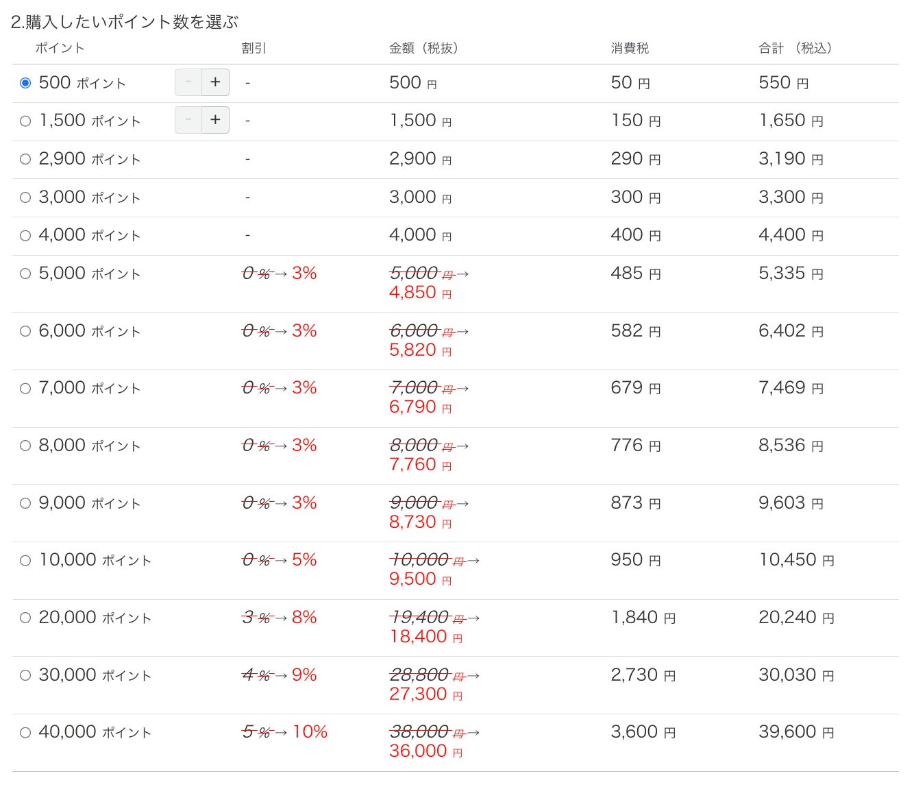 通常は20,000ポイント(22,000円税込)から割引ありの購入となりますが、上記期間(日本時間基準)でお支払い方法が銀行振込の場合のみ、5,000ポイントの購入から特別割引を適用いたします。