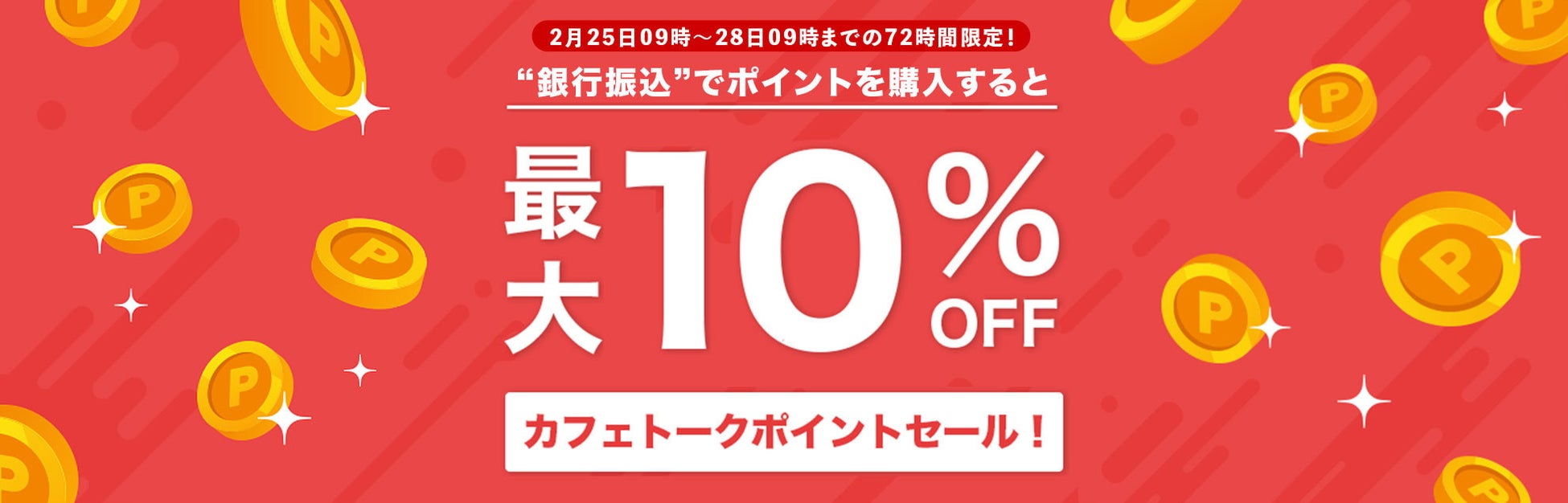 オンライン習い事のカフェトーク - 銀行振込によるポイント購入で最大10%割引、27日23時59分まで