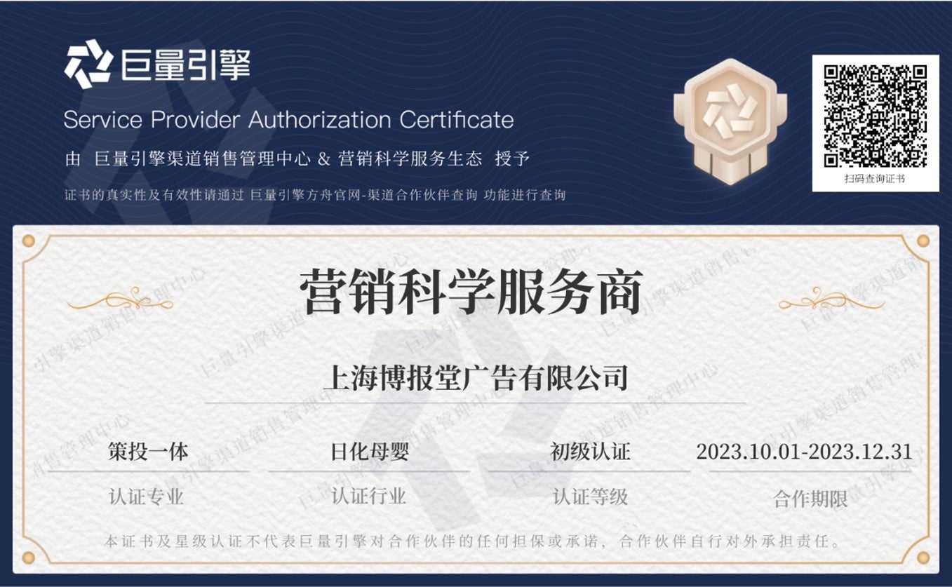 そのような中、上海博報堂は、「巨量引擎」のビッグデータオフィシャルISV資格の取得に続き、特に業務実績の多いトイレタリー・ベビー用品領域におけるマーケティングの高い専門性が認められ、このたび同領域のプロフェッショナル認定を取得。これにより同領域のスペシャリストとして、「巨量引擎」のビッグデータを活用した広告戦略の策定からクリエイティブや広告の効果測定、実行までを支援、広告の配信効果の向上を実現いたします。また、同データを活用し、新商品戦略・マーケティング戦略の策定など、事業活動を幅広くサポート。「巨量引擎」が保有するビッグデータを効果的に活用しながら、企業のブランド力強化と売上向上にさらに貢献してまいります。