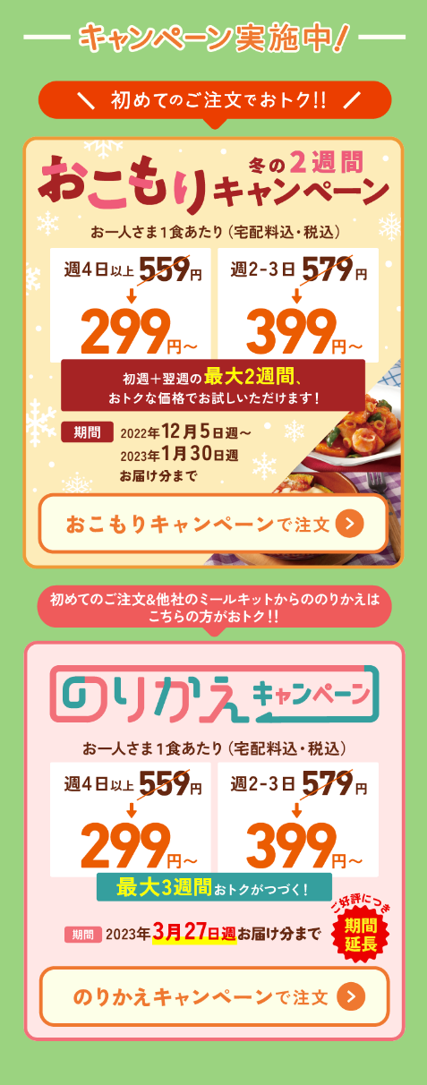◆初めてご注文の方はこちらがおすすめ!「冬の2週間おこもりキャンペーン」実施中