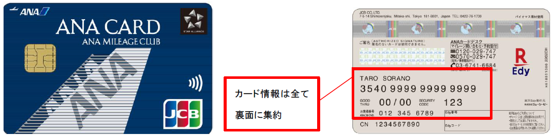 お客様の大切なカード情報は裏面に集約することで、ご利用時のカード情報の盗み見等のリスクを低減します。