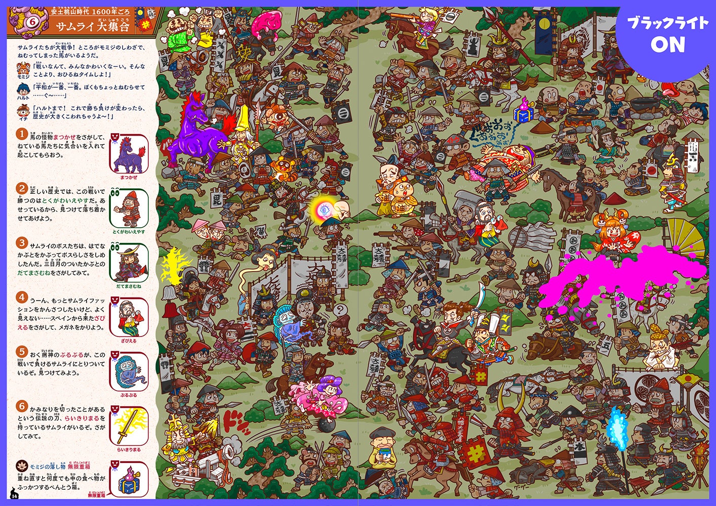 累計18万部超えのシリーズ最新刊は⽇本の歴史をタイムトリップ!『ブラックライトでさがせ!妖怪探偵歴史旅行』5/26発売&「上野の森親子ブックフェスタ2022」で先行販売・絵本体験イベント開催