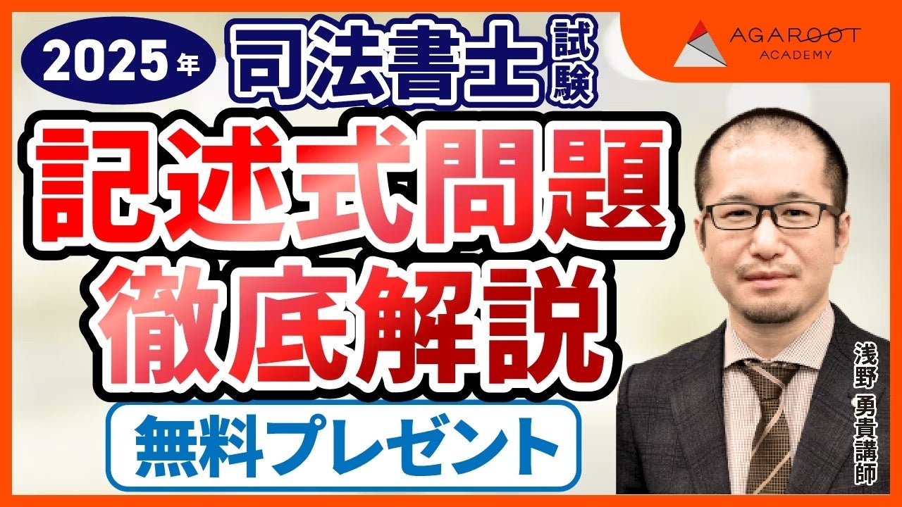 2025年司法書士試験を受験される皆様への応援企画として、アガルートアカデミーでは「記述式問題の徹底解説動画」を無料公開いたします。