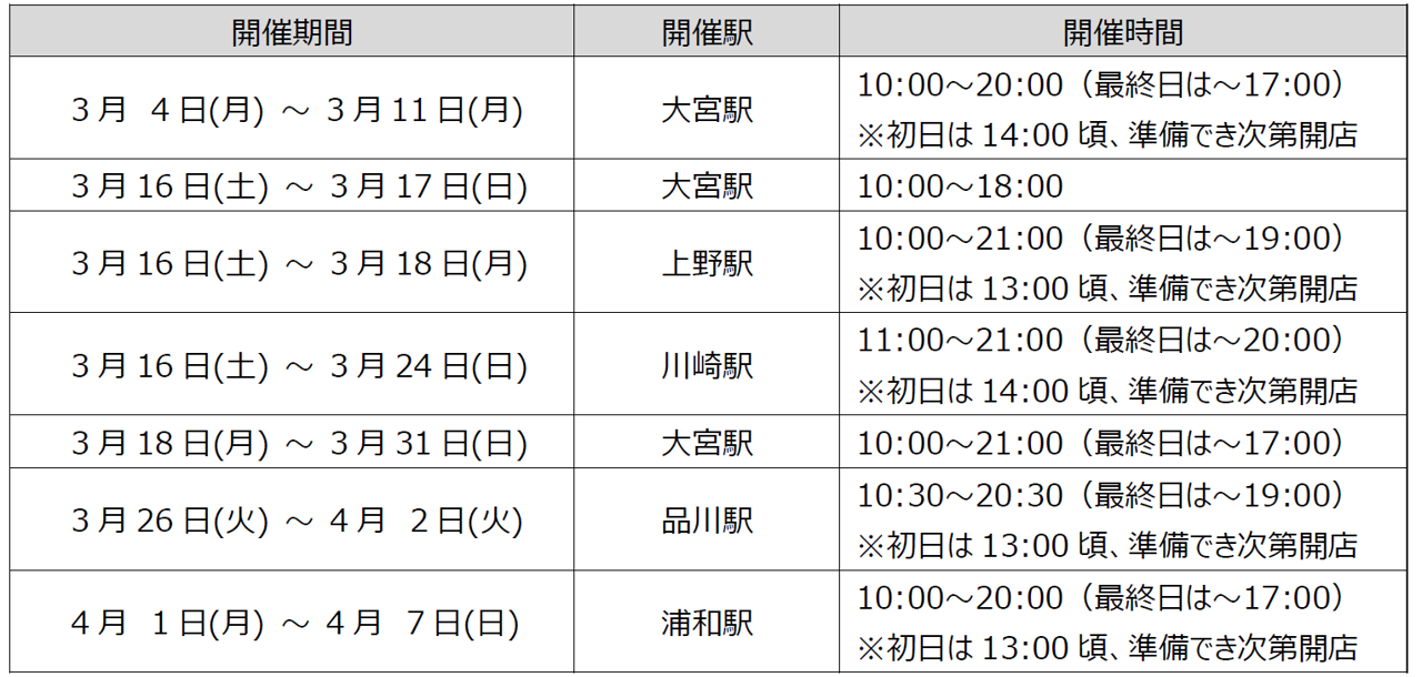 【開催スケジュール】 ※いずれの催事も㈱JR東日本クロスステーションにて運営