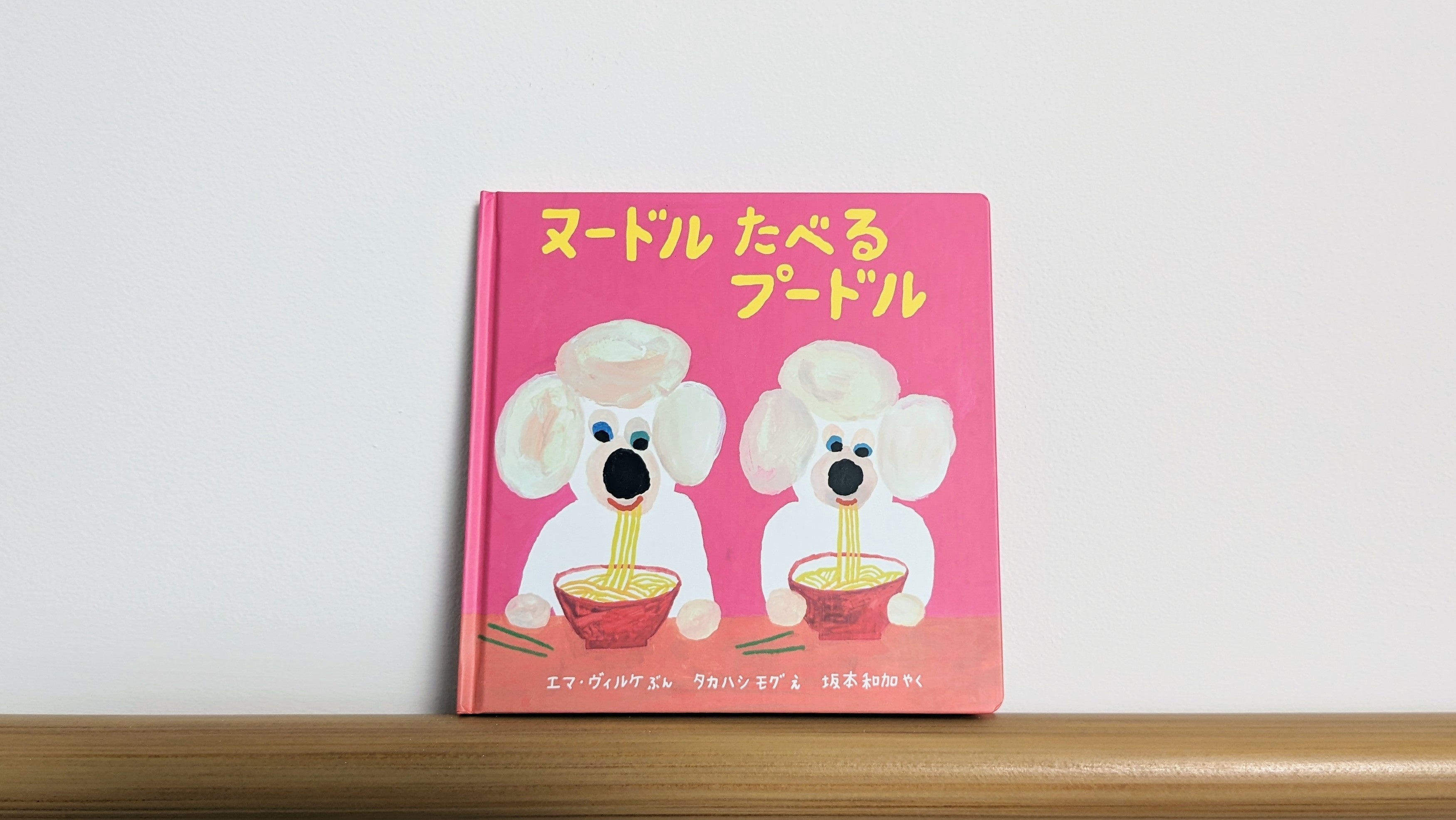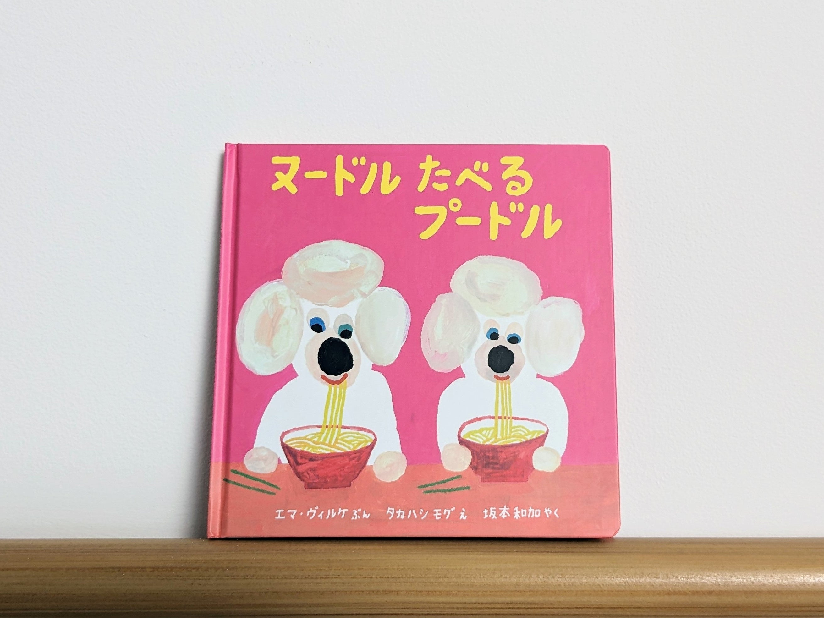原書の『Poodles Eating Noodles』は、スウェーデンの絵本作家エマ・ヴィルケさんが英語で文章を、国内外で活躍する日本人アーティストのタカハシモグさんが絵を担当。