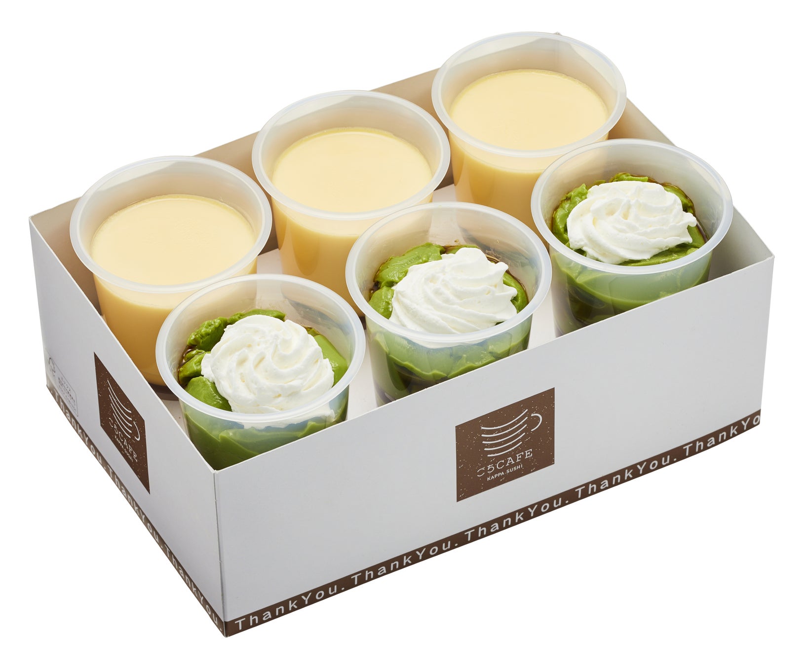 また、食後のデザートまでお楽しみいただけるよう、かっぱ寿司の人気スイーツごちCAFEより『プレミアムプリン』とのお得なセットもご用意しております!