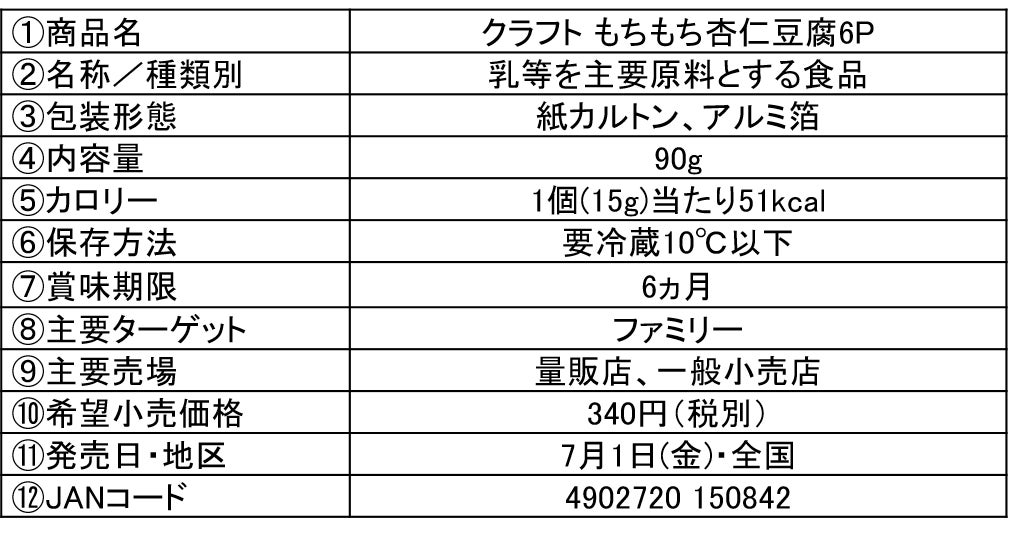 森永乳業は、“新食感”チーズデザート「クラフト もちもち杏仁豆腐6P」を、7月1日(金)より全国にて新発売いたします。