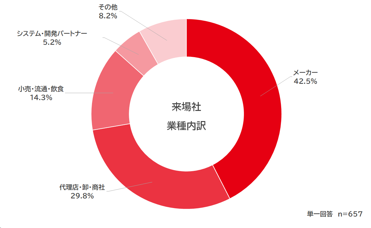 「メーカー」 が最も多く、来場社全体の42.5%を占める
