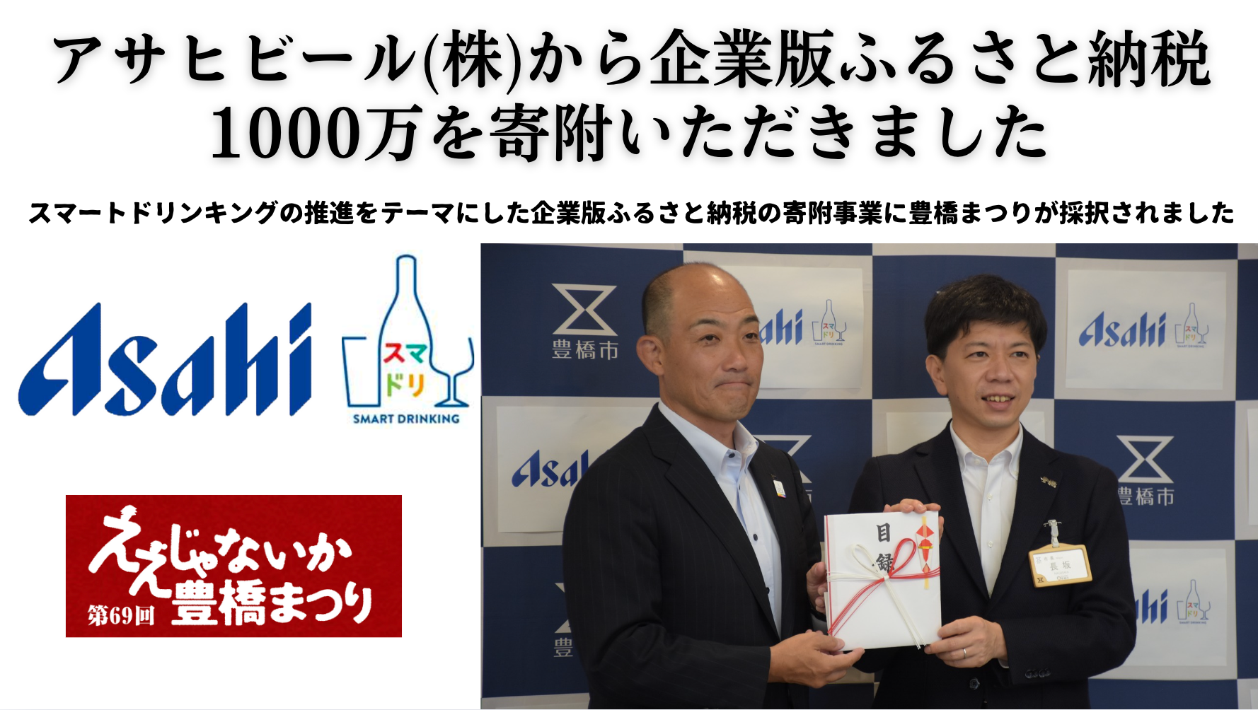 豊橋まつりでの「スマートドリンキング」を推進 アサヒビール(株) からの企業版ふるさと納税1000万円の寄附に対し、愛知県豊橋市は感謝状を贈呈しました