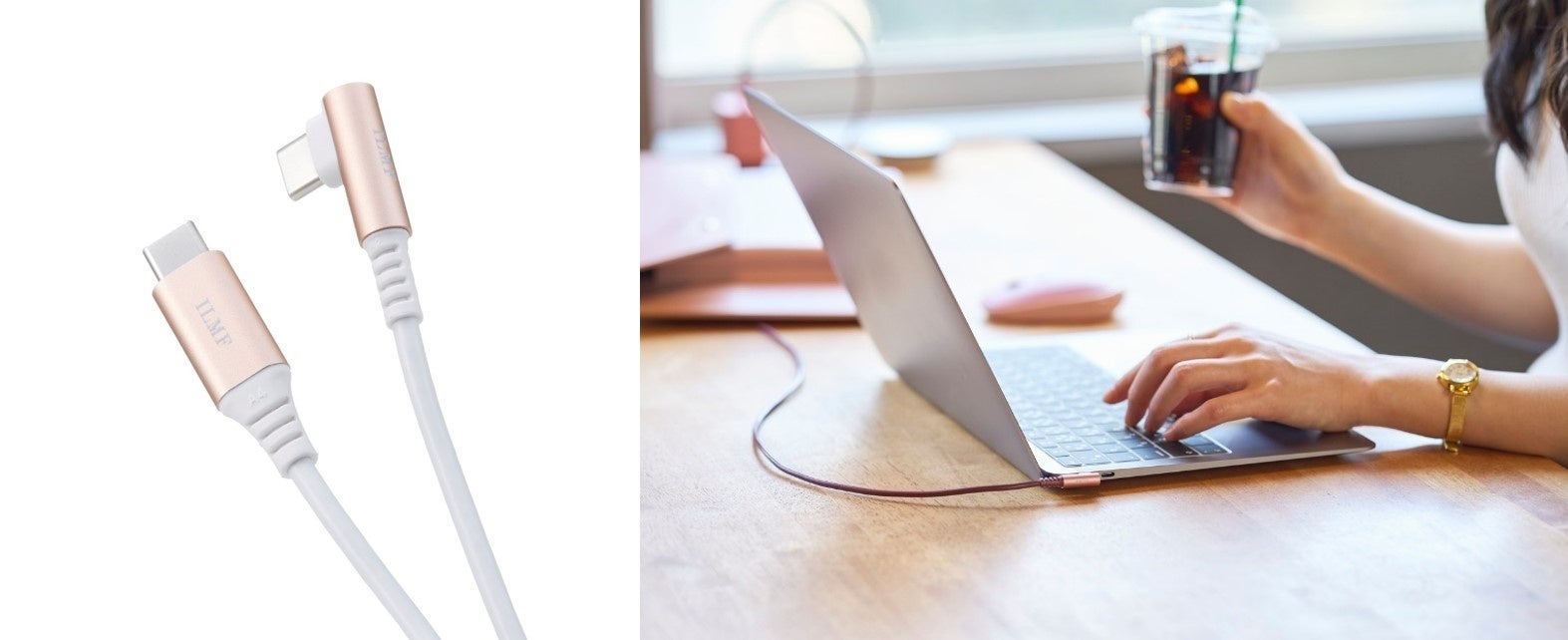 飛び出しが少ないL字コネクターです。パソコン周りの配線やデスク上をすっきりと見せ、スマートに接続することができます。