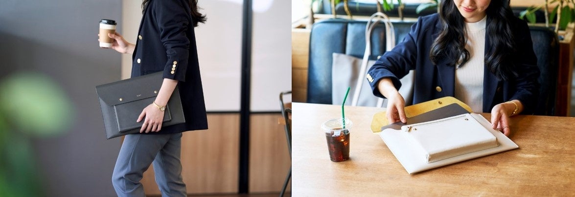 プライベートにもビジネスシーンにも溶け込みながら、目を引くアクセントカラーが魅力の4色のカラーバリエーションで、7アイテムをラインアップ。また、オフィスワークとテレワークを組み合わせたハイブリットワークの方でも持ち運びしやすく、効率的に作業を行うための機能性にもこだわりました。