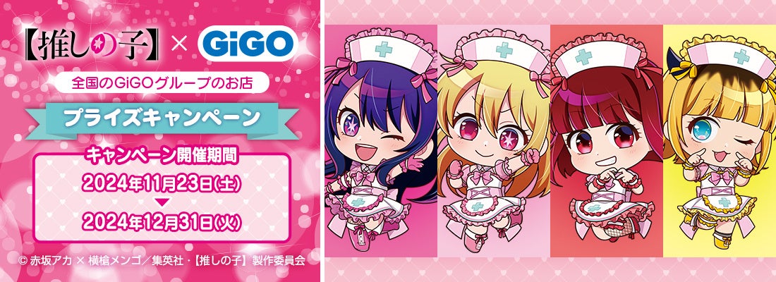 株式会社GENDA GiGO Entertainment(本社:東京都港区 代表取締役社長:二宮 一浩 以下当社)は GiGOグループのお店におきまして、TVアニメ『【推しの子】』とのコラボキャンペーンを2024年11月23日(土)より開催いたします。